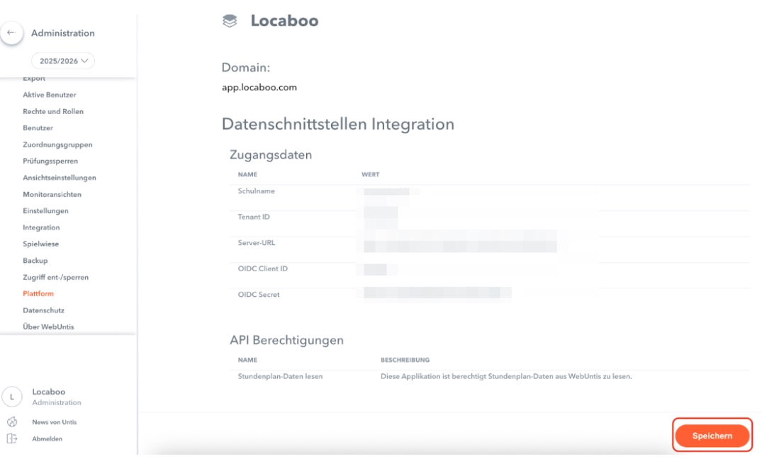WICHTIG: Bitte notieren Sie sich die Tenant ID und geben Sie diese an den Ansprechpartner für die Webuntis-Locaboo Schnittstelle weiter.