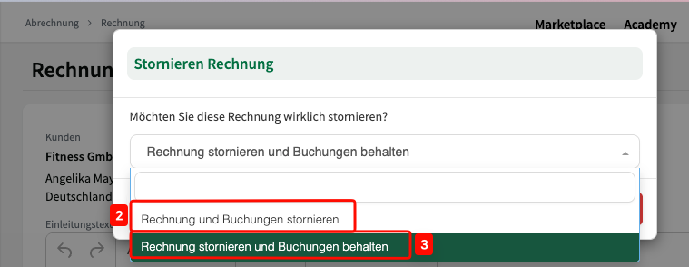 Eine ausführliche Anleitung hierzu finden Sie in unserer Locaboo Academy im Video: Rechnung stornieren oder Zahlung hinzufügen.